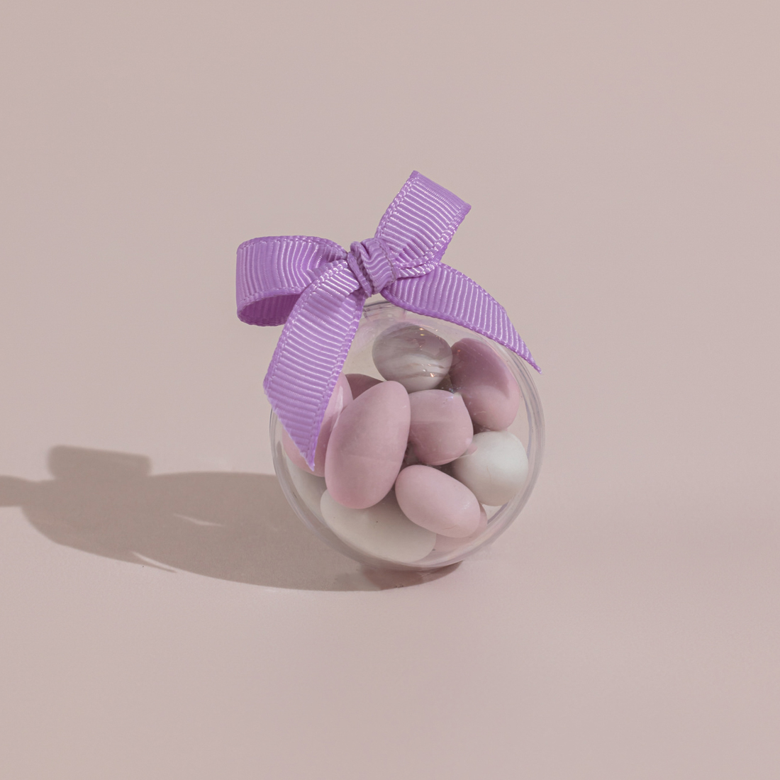 A plexi ball holding sugared almonds