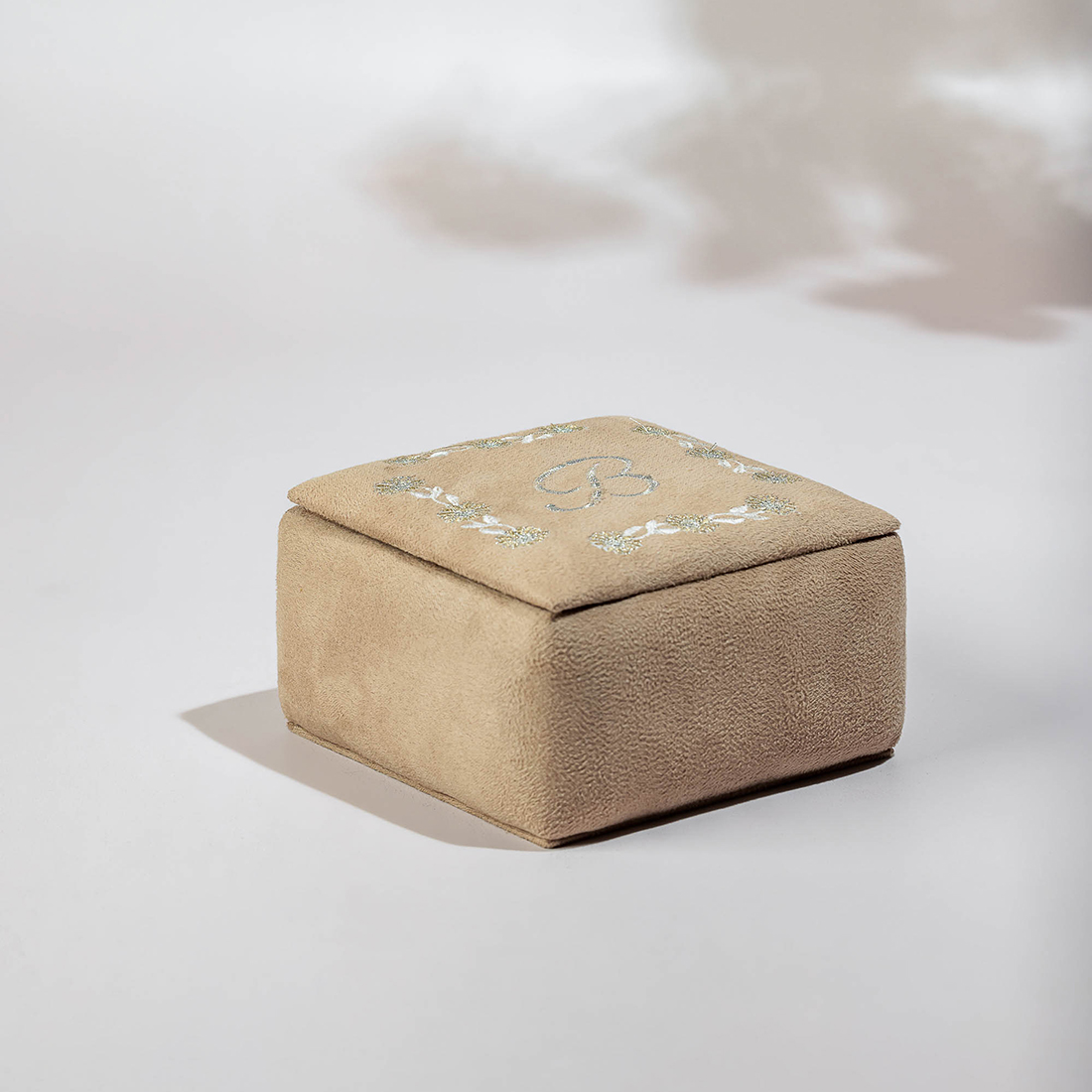 JOD75A silver flower-shaped incense burner in a velvet white box with a personalised name embroidered. -