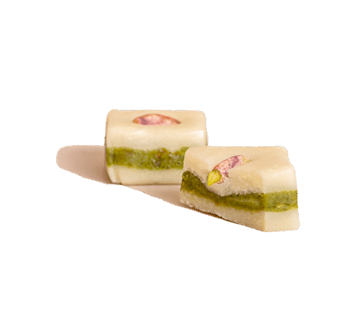 • Almond paste with pistachio, topped by one whole pistachio