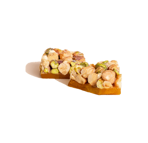 • Dried apricot with crushed pistachios, hazelnuts, almonds and cashews