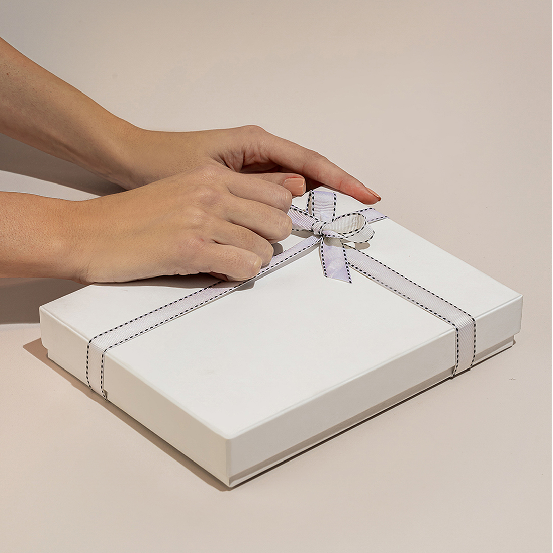 JOD55A gift set including the holy Quran with an engraved name plate, pearl worry beads with Ayat Al Kursi engraved, two personalized pieces of chocolate, and a box of sugared almonds - in a customized gift box. -