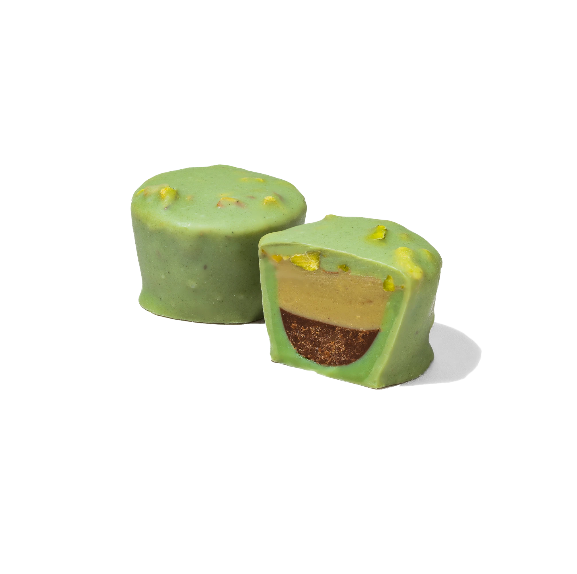 JOD0Pistachio paste surrounded by pistachio nougat and enrobed with whole pistachios -