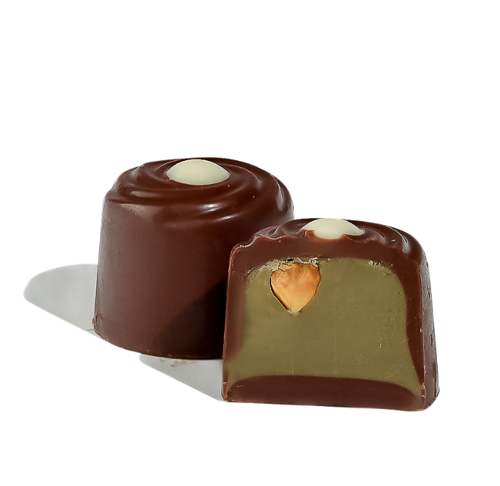 Milk chocolate with pistachio cream and crushed pistachio