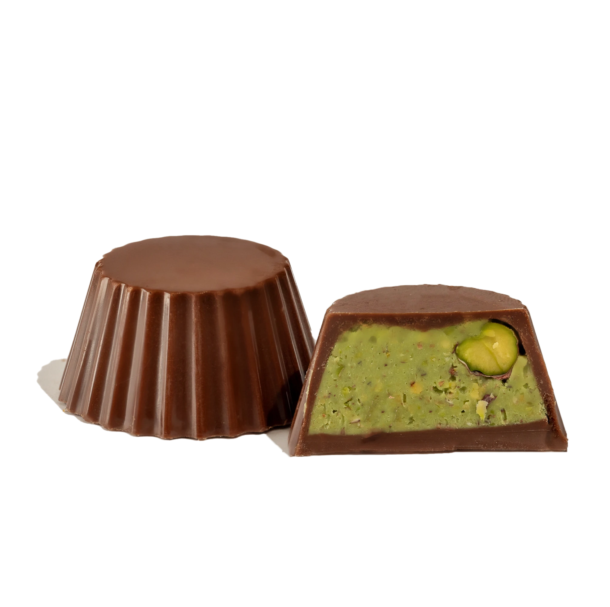 Milk chocolate with pistachio paste with crushed pistachios